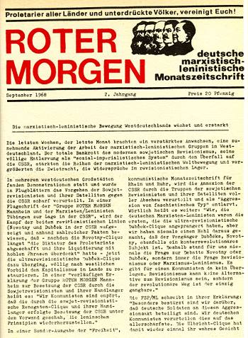 Albanien verläßt den Warschauer Pakt Das Zentralkomitee der Partei der Arbeit Albaniens und der Ministerrat der Volksrepublik erklärten zum Austritt des Landes: Der Warschauer Pakt dient nicht mehr dem Schutz der sozialen Errungenschaften, weil es gerade die revisionistisch beherrschten Länder dieses Paktes sind, die den Kapitalismus restaurieren. Der Pakt hat seine ideologische Klassenbasis verloren. Er dient nicht mehr den proletarischen Internationalismus, sondern ist zu einem Instrument in den Händen der sowjetischen Arbeiterverräter geworden, zur Durchführung ihrer konterrevolutionären, imperialistischen Ziele, wie die Aggression der Paktstaaten auf die CSSR eindeutig beweist. Der Warschauer Pakt dient heute dem kriminellen Komplott, das die sowjetischen Revisionisten mit den US-Imperialisten über die Aufteilung der Welt in einerseits sowjet-imperialistische und andererseits US-imperialistische Interessenssphären abgeschlossen haben. Das Ziel der sowjetischen Revisionismen und der US-Imperialisten ist die totale Aufteilung der Welt, die Ausbeutung und Knechtung der kleinen Nationen. .Diesem kriminellen Komplott dient auch der verbrecherische Atomsperrvertrag. Alle Anti-Imperialisten, alle Völker der Welt, denen die nationale Unabhängigkeit teuer ist, müssen gegen dieses finstere Komplott zur Versklavung der Völker der Welt kämpfen. Der mutige, konsequente Schritt., den die Volksrepublik Albanien durch ihren Austritt aus dem Warschauer Pakt vollzog, wurde von allen Marxisten-Leninisten der Welt freudig begrüßt. Die Volksrepublik China versicherte dem albanischen Volk und seiner Partei brüderliche Hilfe und Solidarität gegen seine Feinde, die Sowjetrevisionisten und den US-Imperialismus. An dem albanischen Volk, das wie ein Mann hinter seiner revolutionären Führung steht und dem 700-Killionen-Volk der Volksrepublik China werden sich alle Imperialisten und Reaktionäre dieser Welt, sollten sie eine Aggression wagen, blutige Köpfe holen und ihren eigenen Untergang nur noch beschleunigen. Die revolutionäre Führung Albaniens wird niemals ihr Volk verraten und vor den Revisionisten im Kreml zu Kreuze kriechen.