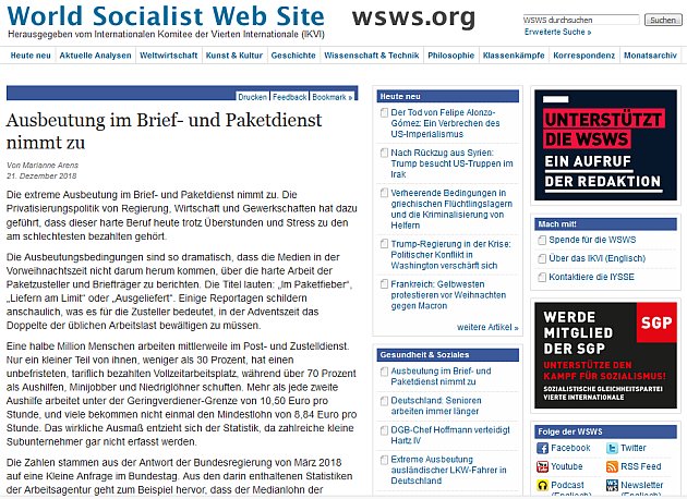 Editorischer HinweisDer Artikel wurde am 21.12.2018 bei wsws.org erstveröffentlicht.