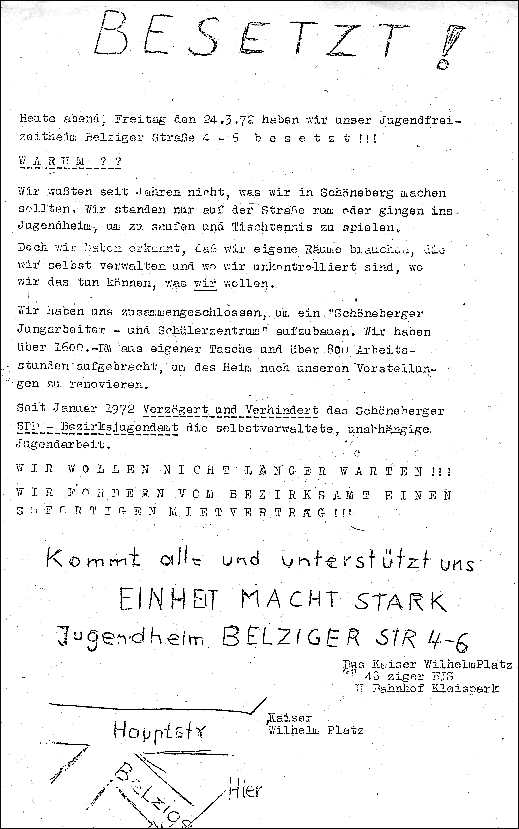 Hingegen bestand die einhellige Meinung, als nächstes den historischen Entwicklungslinien nachzugehen, die - der Studenten- und Jugendrevolte entspringend - sich bis die Gegenwart weitervermittelt haben. Hierbei interessierte die Redaktion wenig die zigmal aufgedröselte ML-Bewegung, sondern die Transformation des antiautoritären Flügels in die Bewegung der selbstorganisierten Jungarbeiter- und Schülerzentren, die ab Juli 1971 wie ein Flächenbrand von Berlin-Kreuzberg ausgehend breite Teile der Bundesrepublik ergriff.
