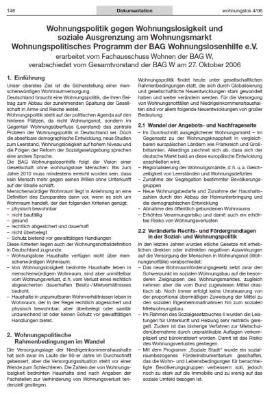 erarbeitet vom Fachausschuss Wohnen der BAG W, verabschiedet vom Gesamtvorstand der BAG W am 27. Oktober 2006