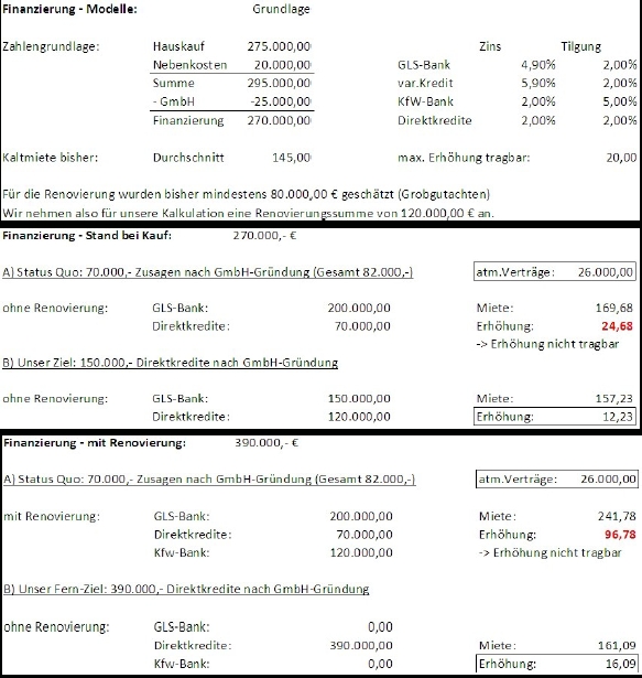 Schauen wir uns dazu das Finanzierungskonzept des Hausprojekts DANZ an (26):