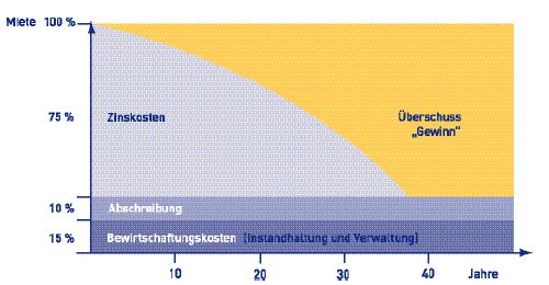 "Jedes Projekt, das den Hauskauf erfolgreich hinter sich gebracht hat, beginnt mit einem Betrag von 10 Cent je m2 Nutzfläche im Monat, der jährlich um 0,5% der Vorjahreskaltmiete ansteigt. Sofern die Miete 80% einer ortsüblichen Miete übersteigt,