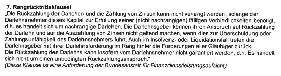 37) Die Klausel wurde dem "Muster eines Direktkreditvertrages" der Wohnsinn-Aachen GmbH entnommen, Wohnsinn Aachen, a.a.O., S. 21