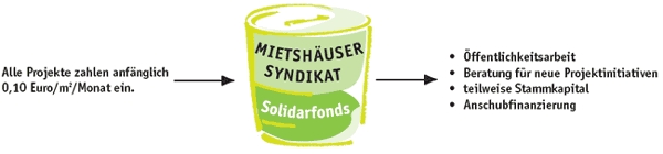 kann die Steigerung des Solidarbeitrags ausgesetzt werden. Der Solidarfonds ist ein Sondervermögen, das vom Mietshäuser Syndikat verwaltet wird.
