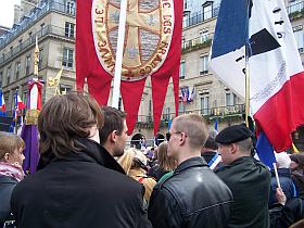 Anhänger der Droite Socialiste oder „Sozialistischen Rechten“ nahmen aber auch am diesjährigen Aufmarsch des FN am 1. Mai 2008 in Paris teil, auch wenn sie bei der Kundgebung - die in diesem Jahr nur rund 1.500 Menschen anzog, im Gegensatz zu rund 4.000 in den vorangegangenen Jahren - durch den Ordnerdienst ein wenig abgedrängt wurden. (VGL. DAZU DIE NEBENSTEHENDEN FOTOS VOM AUTOR DIESER ZEILEN.)Dabei trugen sie Kopfbedeckungen, die an die französische Miliz während des Zweiten Weltkriegs erinnern sollen, schwarze Handschuhe und die bereits bei früheren Kundgebungen zu sehenden Fahnen der Droite Socialiste, nämlich Flaggen in den französischen Nationalfarben mit einem „V“ im schwarzen Kreis in der Mitte.