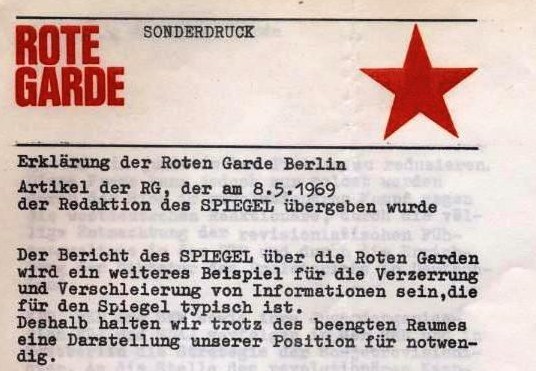 Die Rote Garde wehrt sich gegen Verzehrrungen und Verschleierungen durch den SPIEGEL und übergibt einen Artikel zum Abdruck , der nicht erfolgt.