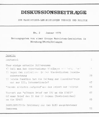 "Wir stellen nämlich die Praxis der KPD nicht 'zur Disposition', um uns von ihr und ihren Traditionen zu 'distanzieren', sondern um dem Imperialismus sagen zu können: Abrechnung folgt! Um die objektiven Bedingungen herausfinden zu können, damit diese Abrechnung wirklich gründlich erfolgt, damit wir endlich die Worte Rosa Luxemburgs wahrmachen können, dem deutschen Imperialismus 'Daumen aufs Auge und Knie auf die Brust' zu setzen und ihn für alle Zeiten mit Stumpf und Stil auszurotten, deswegen stellen wir die Theorie und Praxis der Komintern und der KPD zur 'Disposition' und aus keinem anderen Grund! Robert Kurz, Dezember 1978, veröffentlicht in: Diskussionsbeiträge zur marxistisch-leninstischen Theorie und Polizik, Nr., Januar 1979, hrg.v. Gruppe Marxisten-Leninisten in Nürnberg/Fürth/Erlangen