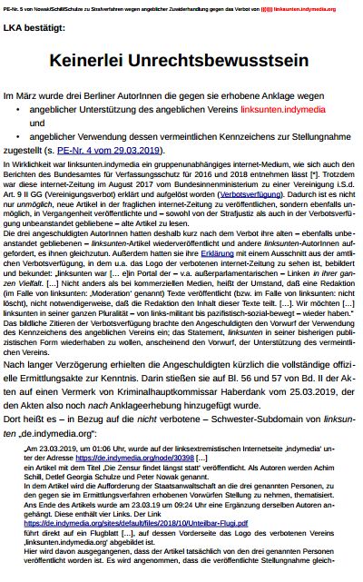 Zum Strafverfahren wegen angeblicher Zuwiderhandlung gegen das Verbot von (((i))) linksunten.indymedia.orgvon Nowak/Schill/Schulze
