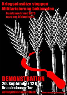 Aus diesem Anlass rufen wir zur Beteiligung am antikapitalistischen Block gegen Krieg und Besatzung durch die NATO-Truppen in Afghanistan auf! Parallel zur Berliner Demonstration gibt es eine Demonstration aus gleichem Anlass in Stuttgart.