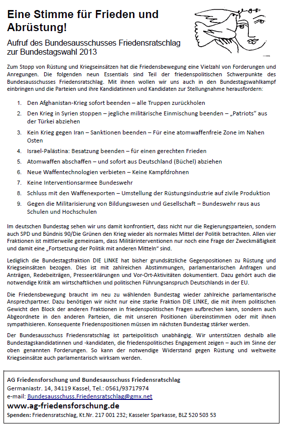 Bundesausschusses Friedensratschlag vom 13.9.2013