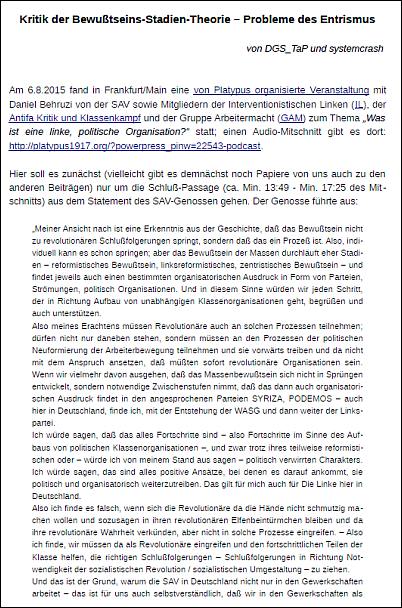 Hier soll es zunächst (vielleicht gibt es demnächst noch Papiere von uns auch zu den anderen Beiträgen) nur um die Schluß-Passage (ca. Min. 13:49 - Min. 17:25 des Mitschnitts) aus dem Statement des SAV-Genossen gehen.