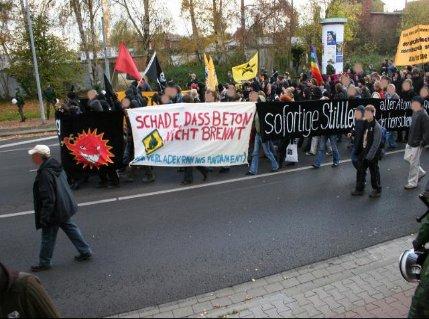 Video:Fernsehbericht von NDR als Stream: Bericht: Castorpolizeicontainer im Wendland abgebrannt Bericht: Brandanschlag auf Polizei-Unterkünfte Am 5.11.2005 versammelten sich ca. 7000 Menschen zu einer Auftaktdemonstration in Lüneburg, welche nicht die letzte ihrer Art bleiben sollte. Die eigentliche Demonstrationsroute wurde verboten und die Demonstration so aus der Lüneburger Innenstadt verbannt. Bis auf einige kleinere Scharmützel, aufgrund eines "falsch" geparkten Polizeibusses verlief die Demonstration unter dem Motto "Atomkraft nein Danke, Erneuerbare Energien jetzt" friedlich. Für ausgelassene Stimmung sorgten Sambabands, Klaus der Geiger und verschiedene Reaggea-Artists.