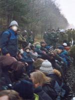 Zwischen Dannenberg und Gorleben wird ein Feuer auf der Strasse von Wasserwerfern der Polizei gelöscht. In Quickborn wurde ein Baumhaus von Robin Wood AktivistINNen "besetzt". Die Polizei versuchte dieses zuräumen, zog jedoch wieder unverrichteter Dinge ab, da das Baumhaus auf einem Privatgrundstück errichtet wurde. Auch in Grippel befanden sich 4 Menschen an der Strecke in Bäumen. Am Dienstagmorgen (22.11.2005) um 5.59 erreichte der Castortransport das Zwischenlager in Gorleben. Und nicht vergessen: nach dem Castor ist vor dem Castor! Bitte html freischalten - danke!