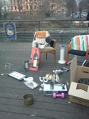 Was bleibt nach 34 Jahren Leben im Kiez? Diese Frage veranschaulichten wir vergangenen Sonntag (29.11.14) auf dem angesagten Flohmarkt am Neuköllner Maybachufer. Mireille, seit langem aktiv im Bündnis Zwangsräumung Verhindern, muss von „Kreuzkölln“ nach Rudow ziehen und kommt damit einer Zwangsräumung zuvor. Der Vermieter hatte kein Nachsehen. Klar, kann er doch jetzt die Miete für die Wohnung in der Nähe der Schönleinstraße glatt verdoppeln.