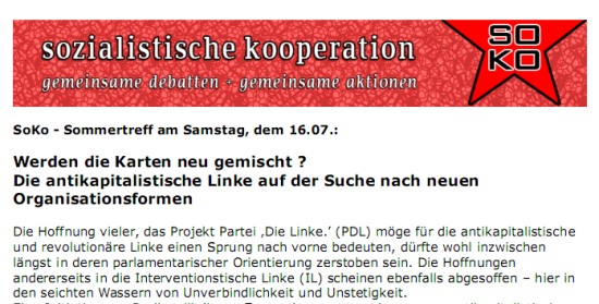 Der Autor ist Mitglied der "Sozialistischen Kooperation" Diese wird im Zusammenhang mit dem "Schöneberger Papier" eine Veranstaltung am 16. Juli in Leverkusen zum Eintrittspreis von 10 bis 15 Euro durchführen, wo der Autor als Referent auftreten soll.